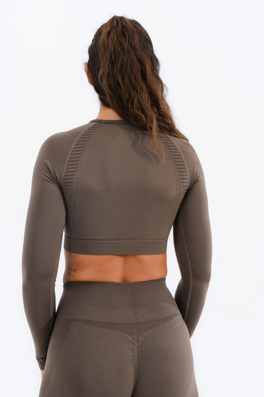 Zenith Uzun Kollu Crop Üst "Kahverengi"