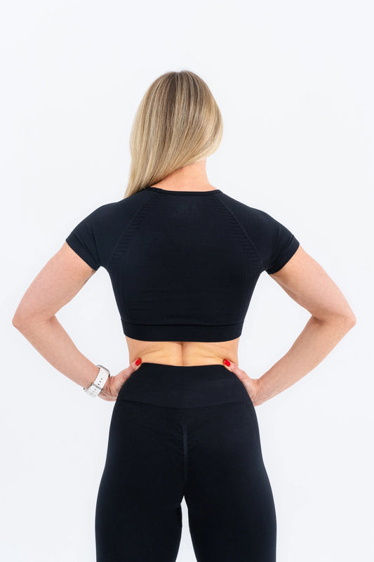 Zenith Kısa Kollu Crop Üst "Siyah"