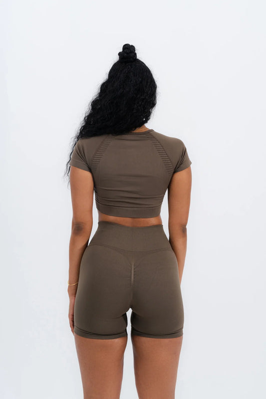 Zenith Kısa Kollu Crop Üst "Kahverengi"