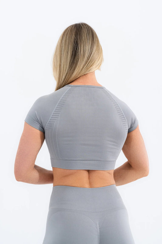 Zenith Kısa Kollu Crop Üst "Gri"